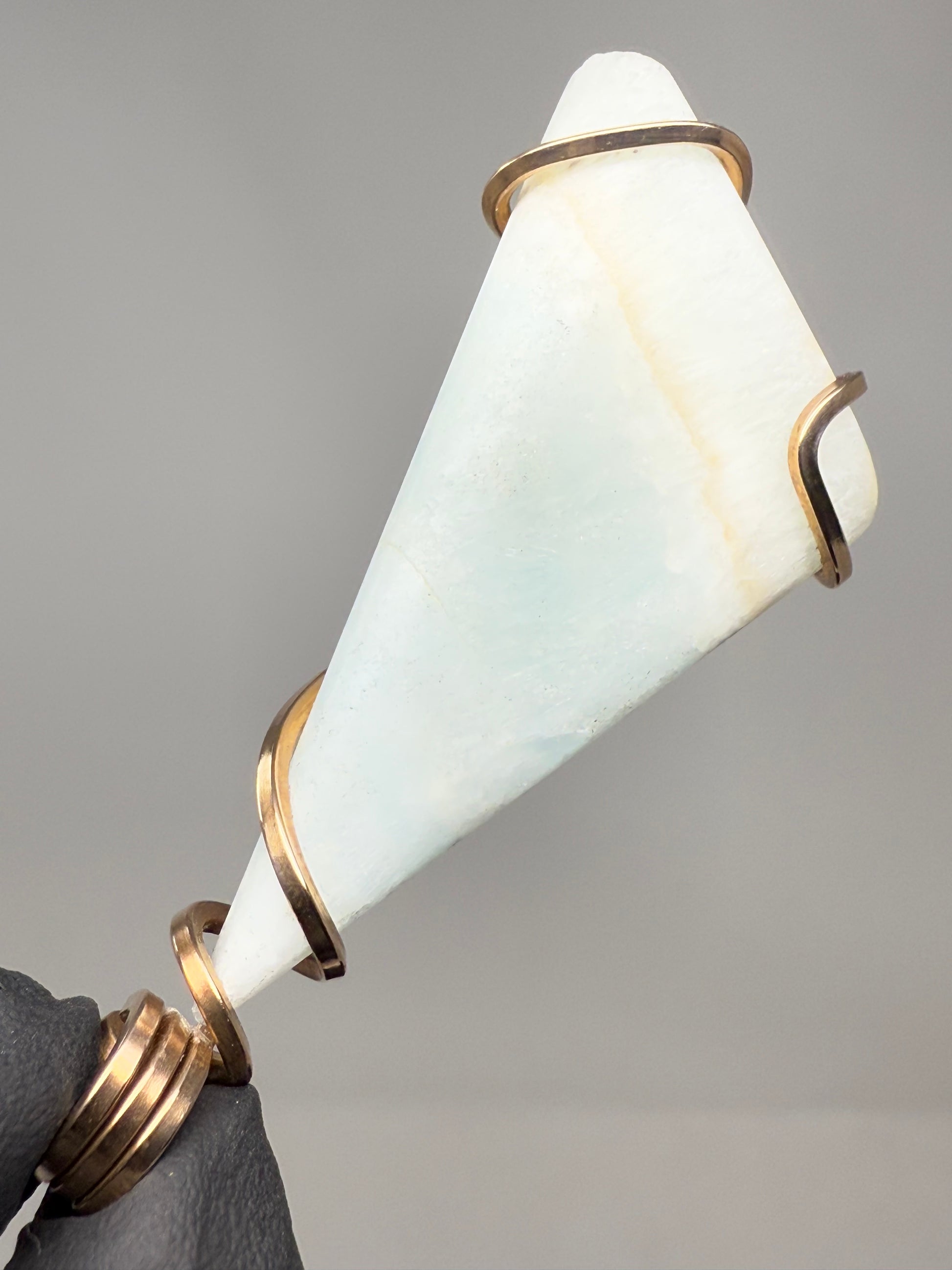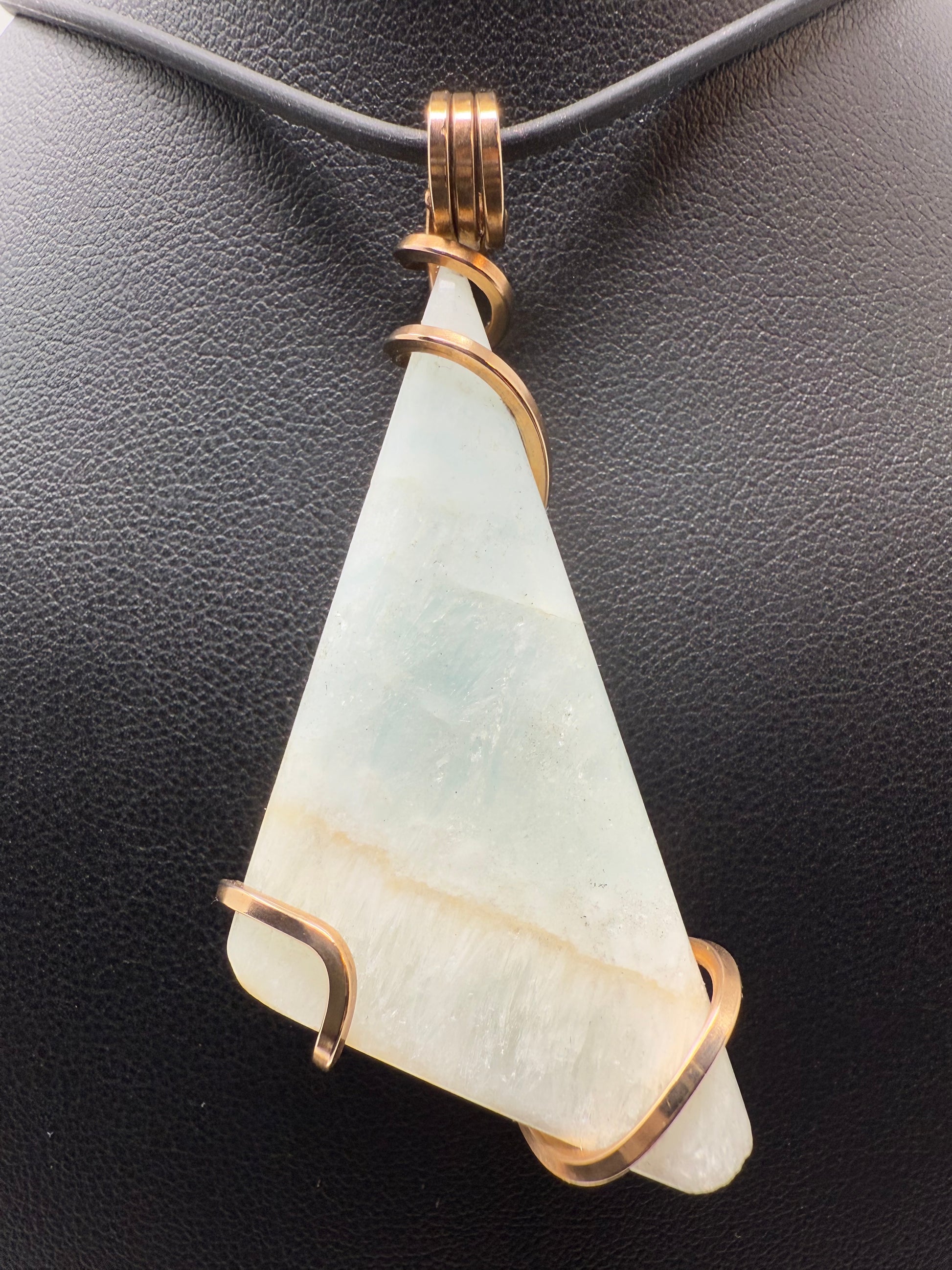 Caribbean Blue Calcite in Bronze. Cords sold separately.Indulge in the soothing energy of Caribbean Blue Calcite, sourced from Pakistan and set in a beautiful bronze design. This calming stone promotes emotional healing and inner peace. Cords sold separately.