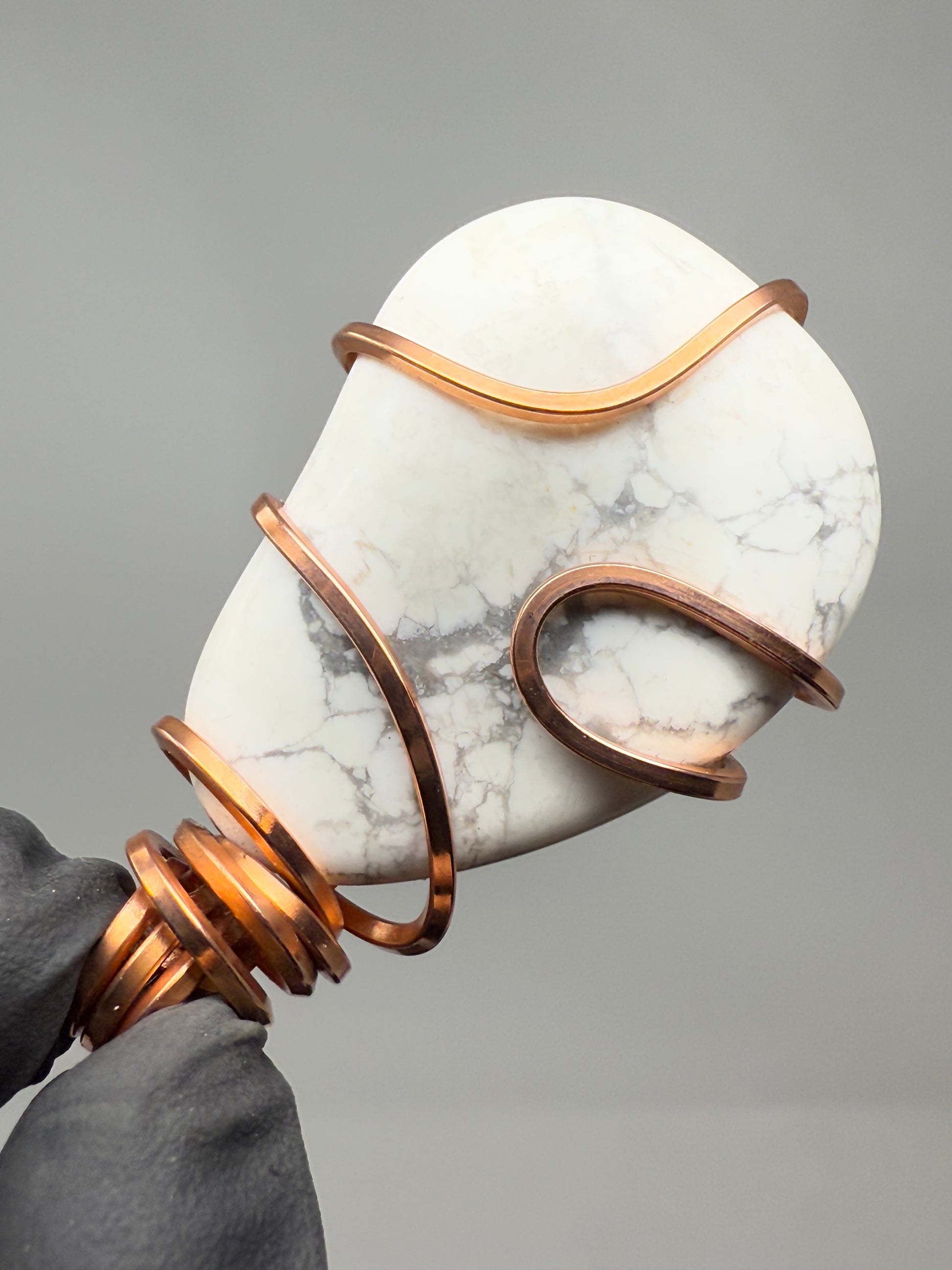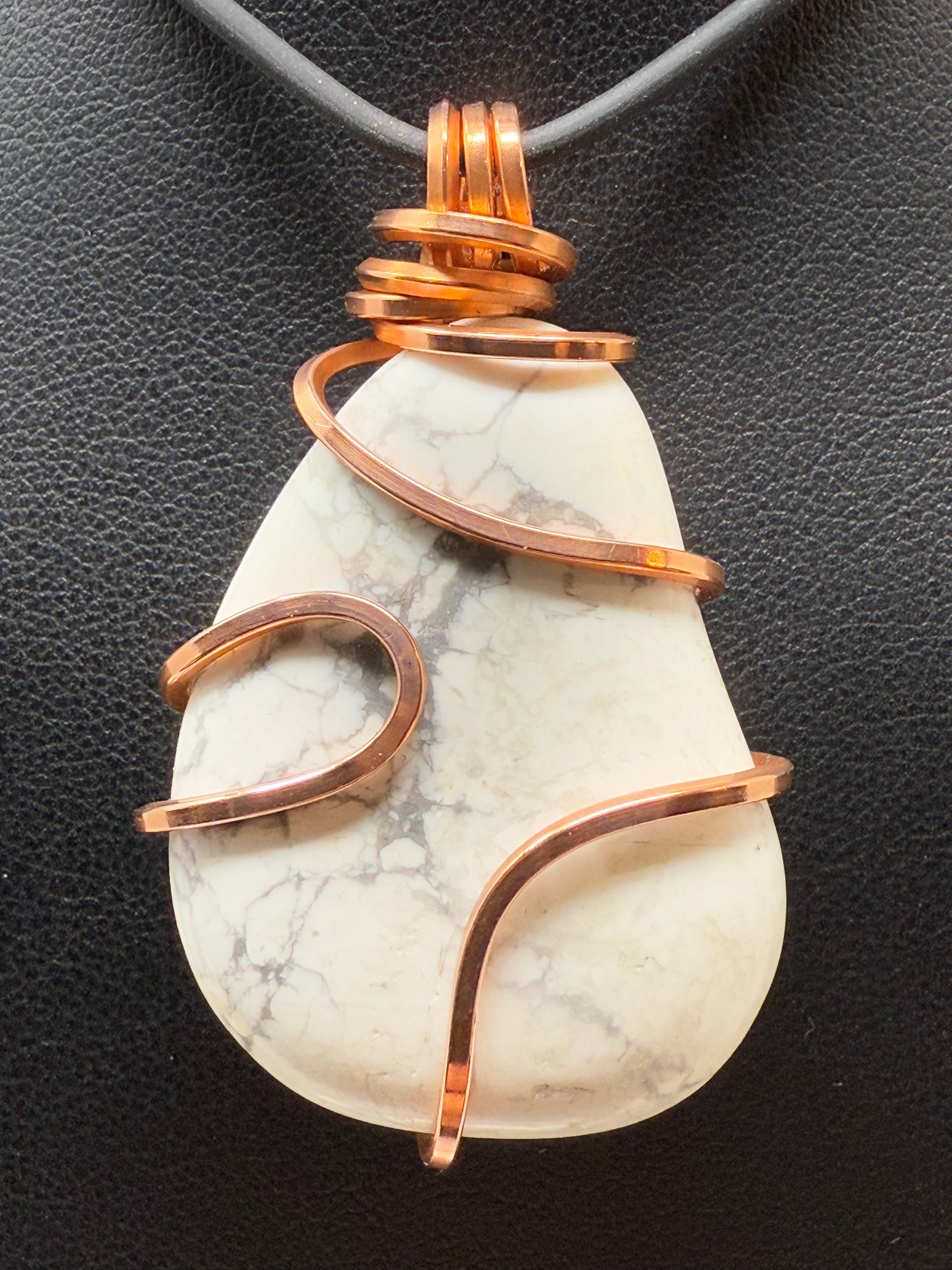 This Howlite Copper Pendant is made with top quality jewelry grade copper and features the metaphysical properties of Howlite. Known for its calming and stress-relieving properties, Howlite is believed to promote peaceful and restful sleep. Please note that cords are sold separately.