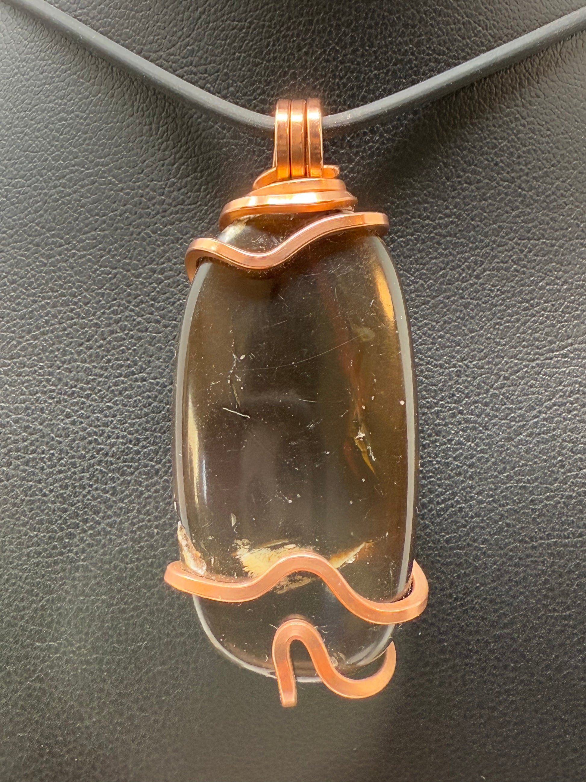 Crafted with the highest quality jewelry grade copper, the Zebra Amber Copper PENDANT boasts a stunning amber stone that is sure to make a statement. Plus, the cords are sold separately, giving you the freedom to choose your own unique style. Add a touch of sophistication to your wardrobe with this one-of-a-kind pendant.